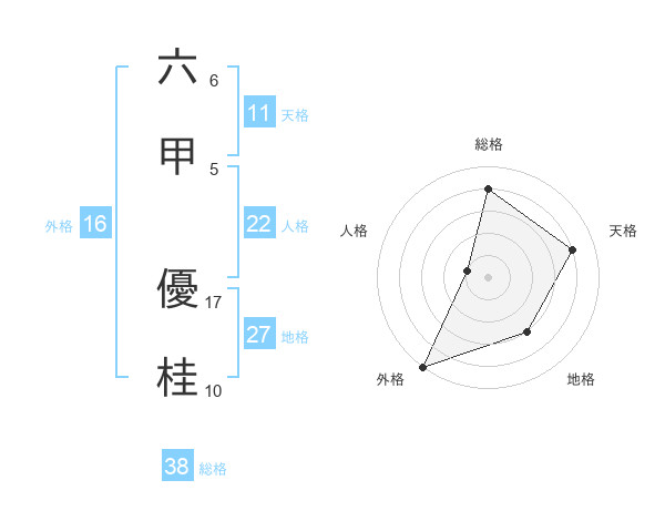 六甲 優桂さんの総格は38画の4点!