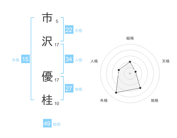 市沢 優桂さんの総格は49画の2点!