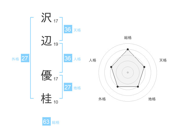 沢辺 優桂さんの総格は63画の4点!