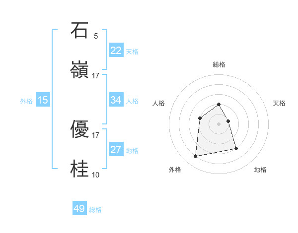 石嶺 優桂さんを姓名の画数から五運を鑑定