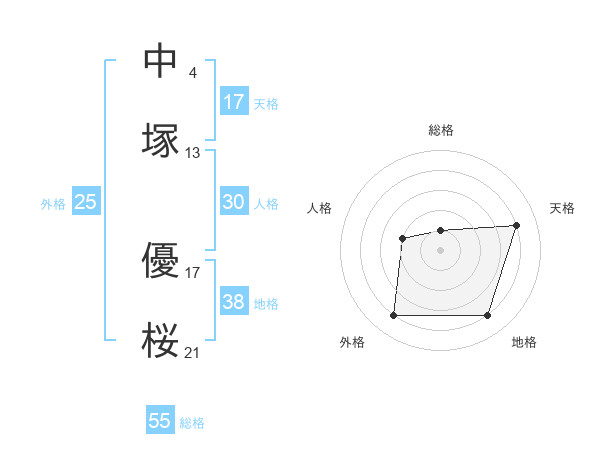 中塚 優桜さんを姓名の画数から五運を鑑定