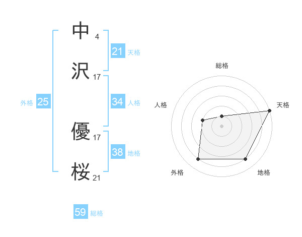 中沢 優桜さんを姓名の画数から五運を鑑定