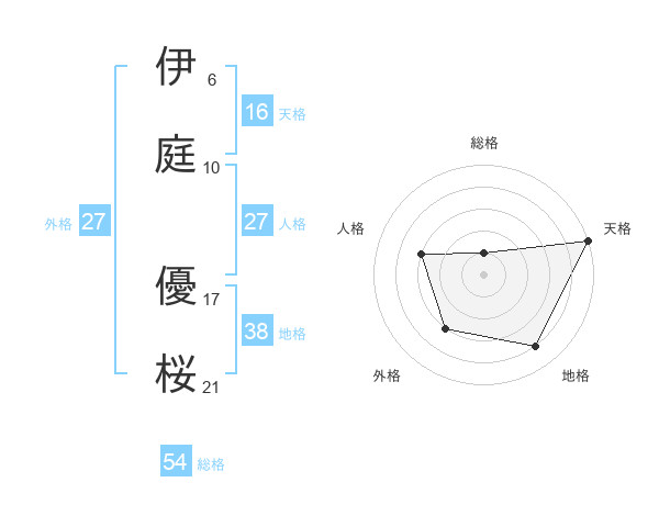 伊庭 優桜さんの天格は16画の5点!