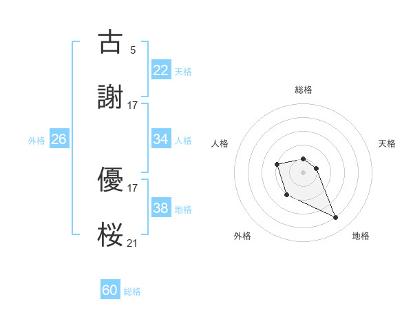 古謝 優桜さんを姓名の画数から五運を鑑定