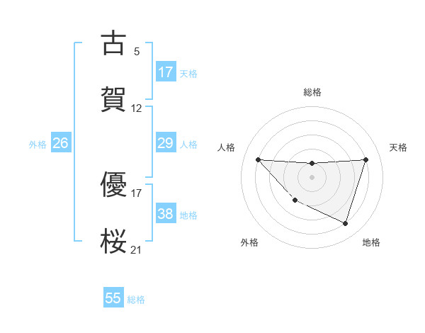 古賀 優桜さんの天格は17画の4点!