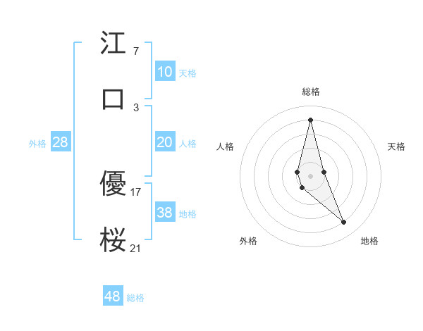 江口 優桜さんの総格は48画の4点!