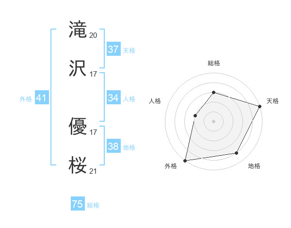 滝沢 優桜さんの総格は75画の3点!