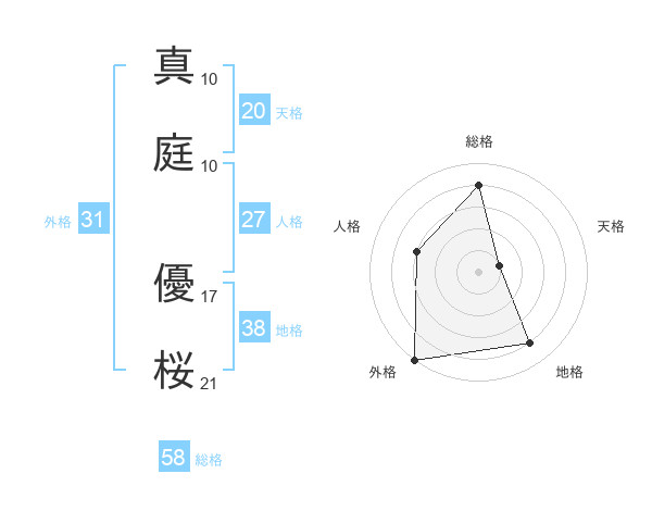 真庭 優桜さんを姓名の画数から五運を鑑定