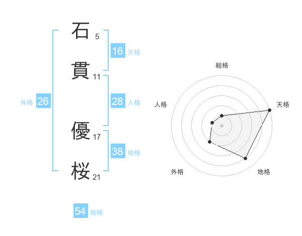 石貫 優桜さんの天格は16画の5点!