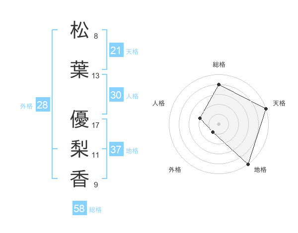 松葉 優梨香さんの天格は21画の5点!