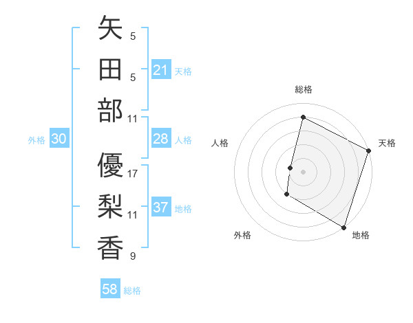 矢田部 優梨香さんを姓名の画数から五運を鑑定