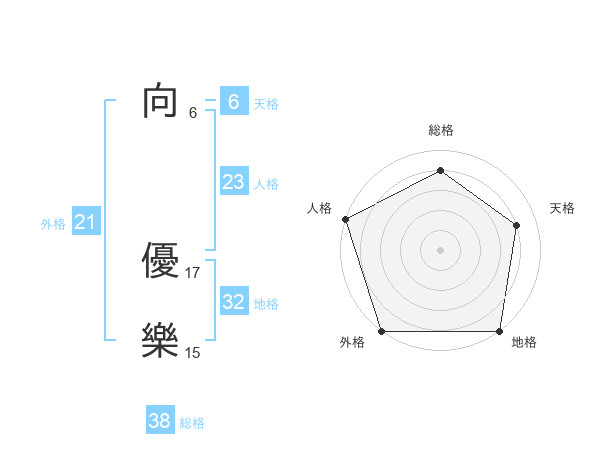 向 優樂さんの外格は21画の5点!