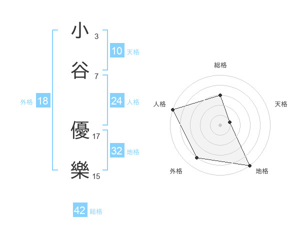 小谷 優樂さんを姓名の画数から五運を鑑定