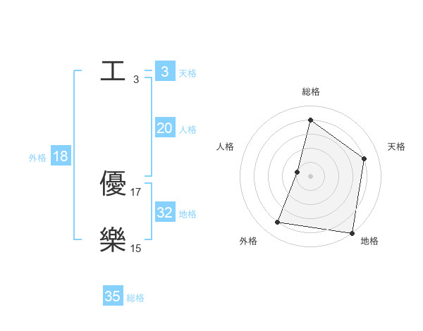 工 優樂さんの外格は18画の4点!