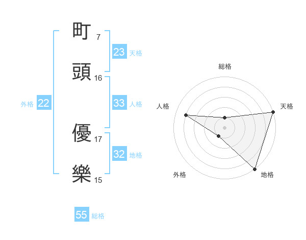 町頭 優樂さんを姓名の画数から五運を鑑定