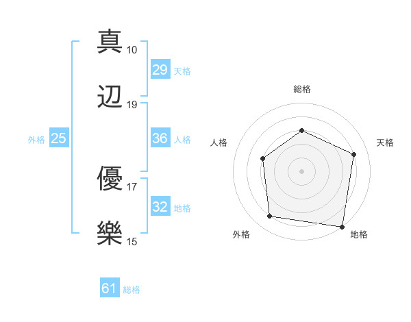 真辺 優樂さんを姓名の画数から五運を鑑定