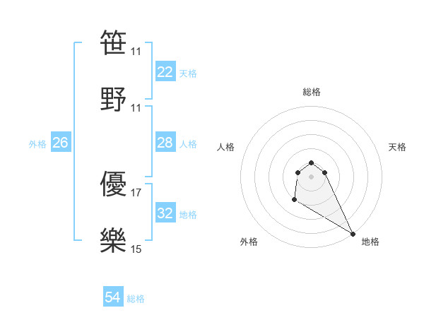 笹野 優樂さんを姓名の画数から五運を鑑定