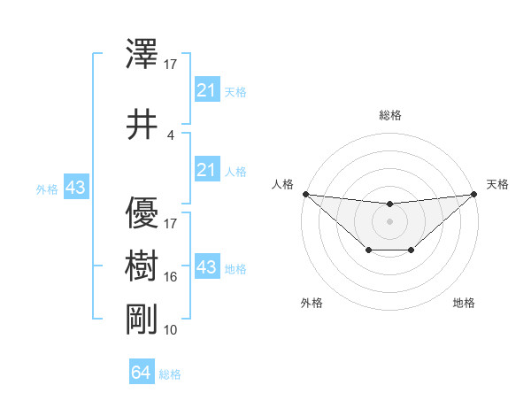 澤井 優樹剛さんの天格は21画の5点!