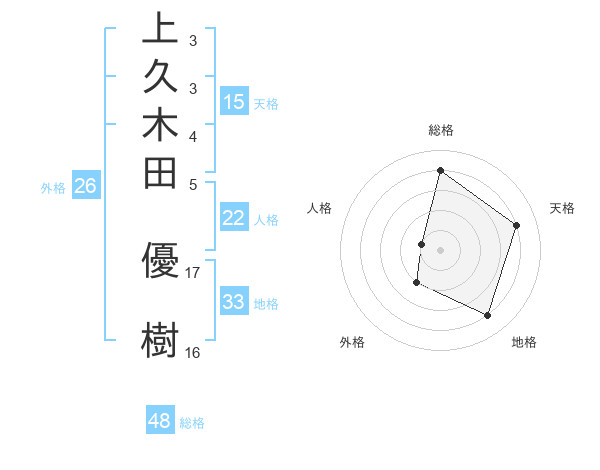上久木田 優樹さんの総格は48画の4点!