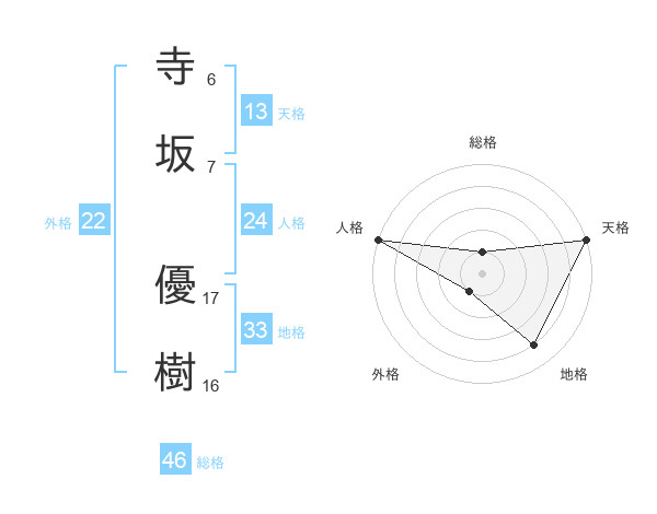 寺坂 優樹さんの天格は13画の5点!