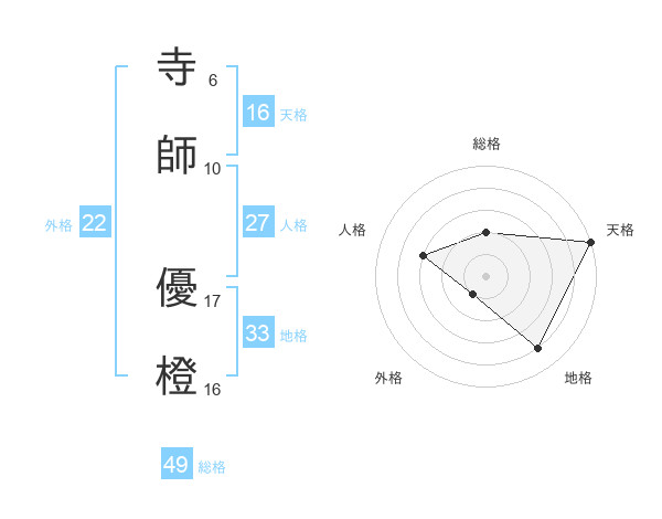 寺師 優橙さんの天格は16画の5点!