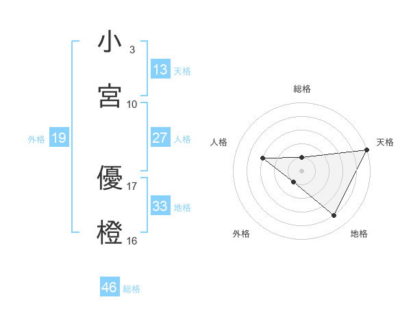 小宮 優橙さんの天格は13画の5点!