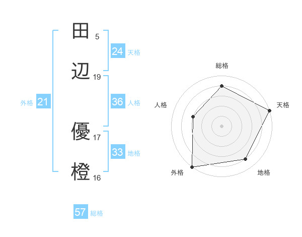 田辺 優橙さんの外格は21画の5点!