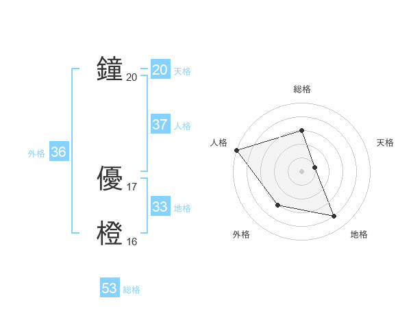 鐘 優橙さんの総格は53画の3点!
