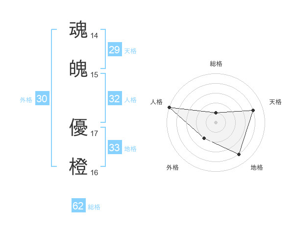 魂魄 優橙さんの地格は33画の4点!