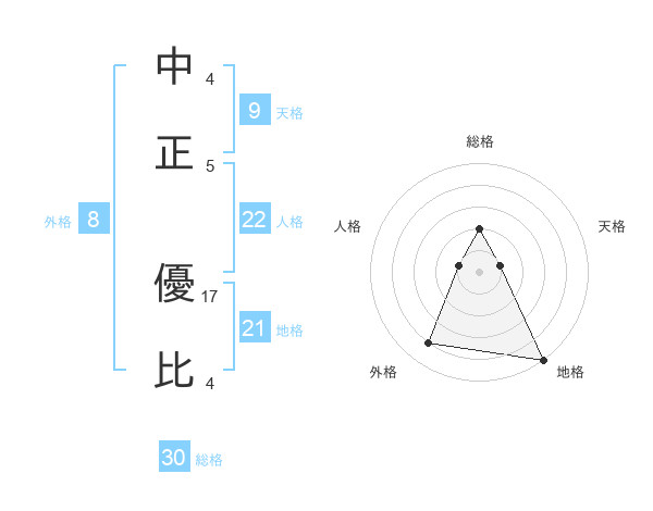 中正 優比さんの外格は8画の4点!