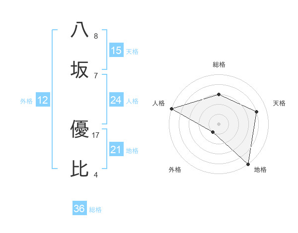 八坂 優比さんの天格は15画の4点!
