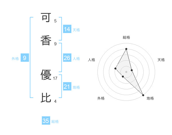 可香 優比さんの総格は35画の4点!