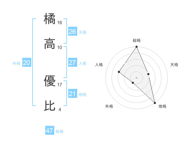 橘高 優比さんの総格は47画の5点!