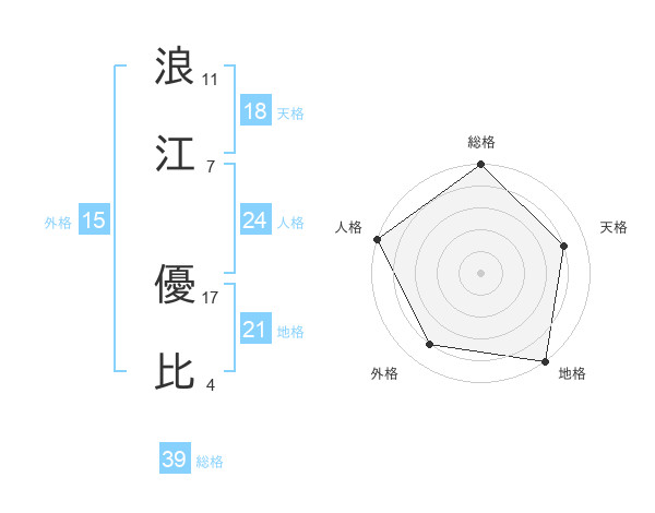 浪江 優比さんの総格は39画の5点!