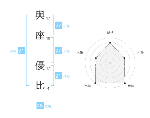 與座 優比さんの外格は21画の5点!