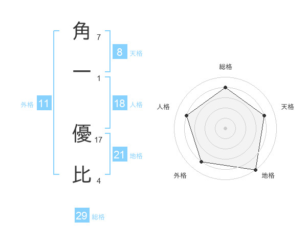 角一 優比さんの天格は8画の4点!