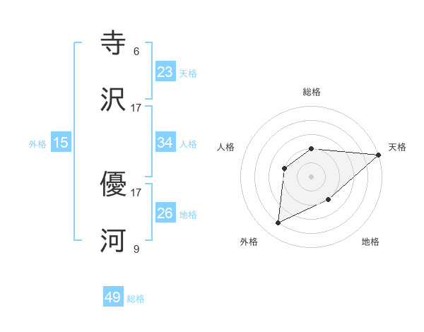 寺沢 優河さんの天格は23画の5点!
