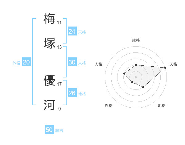 梅塚 優河さんを姓名の画数から五運を鑑定