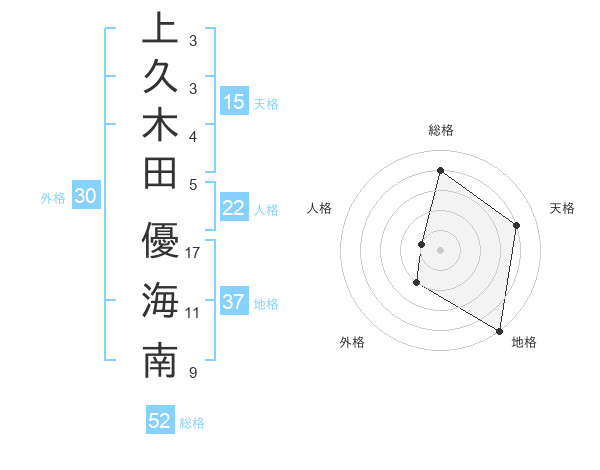 上久木田 優海南さんを姓名の画数から五運を鑑定