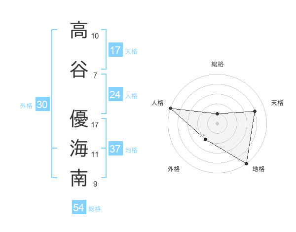 高谷 優海南さんを姓名の画数から五運を鑑定