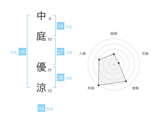 中庭 優涼さんの外格は16画の5点!