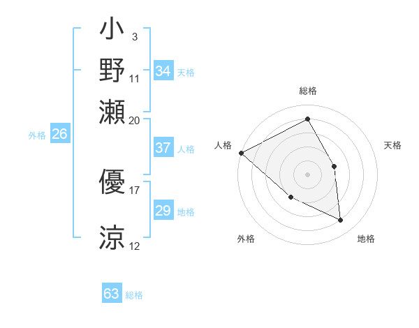 小野瀬 優涼さんを姓名の画数から五運を鑑定