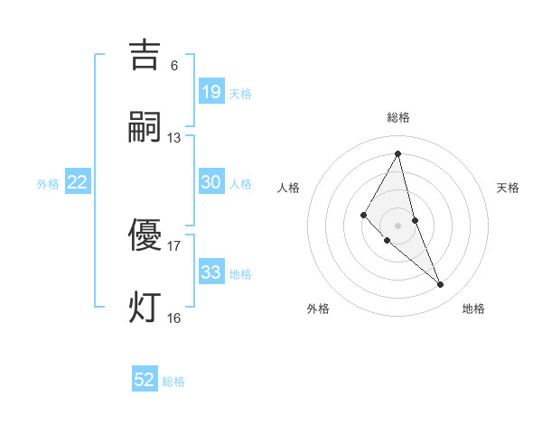 吉嗣 優灯さんの総格は52画の4点!