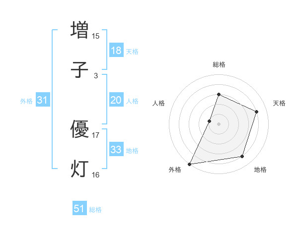 増子 優灯さんの総格は51画の3点!