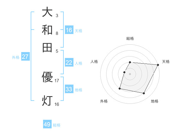 大和田 優灯さんを姓名の画数から五運を鑑定