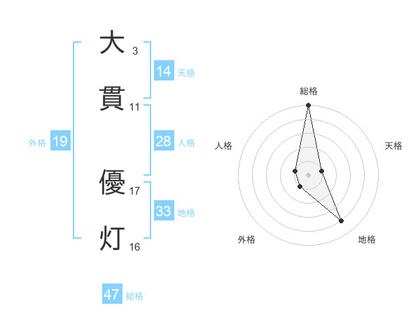 大貫 優灯さんの総格は47画の5点!