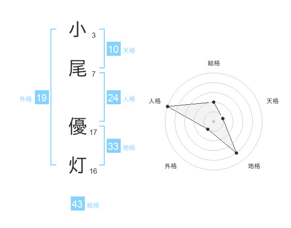 小尾 優灯さんの総格は43画の2点!