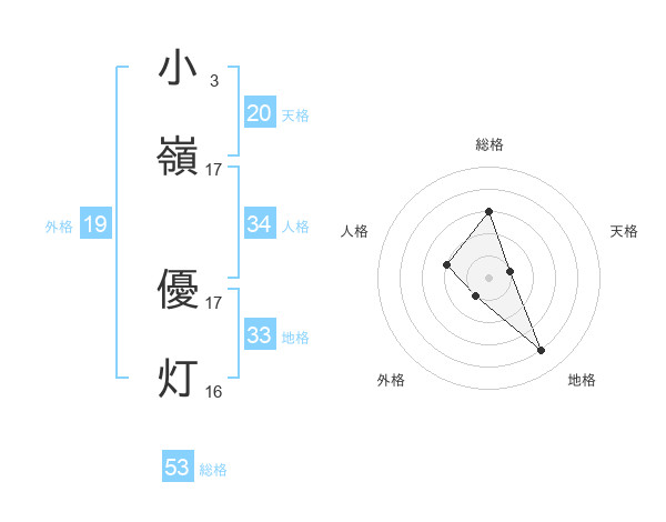 小嶺 優灯さんの総格は53画の3点!