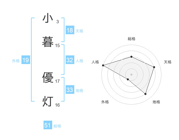 小暮 優灯さんを姓名の画数から五運を鑑定