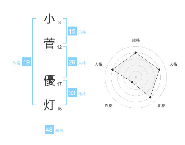小菅 優灯さんの総格は48画の4点!